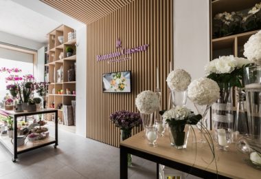 Светлый и лёгкий дизайн интерьера цветочного магазина.