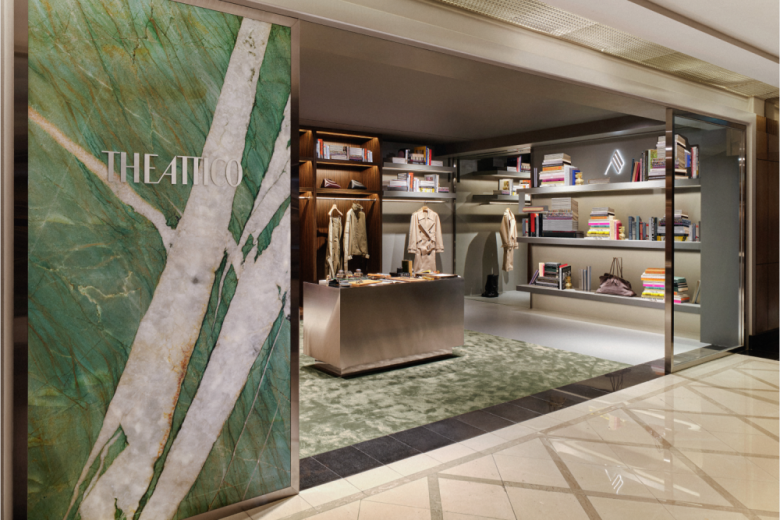Новый формат представляет собой изысканный shop-in-shop, концепция которого получила название «The Library» («Библиотека»). Это решение созвучно эстетике первого флагманского магазина бренда на Ибице, который был оформлен в тематике «The Bathroom» («Ванная»), и подчеркивает креативный и концептуальный подход THE ATTICO к розничной торговле.